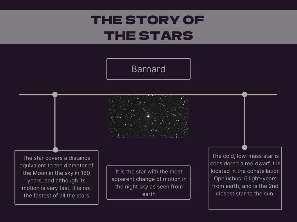 Barnard is a star discovered by astronomer Edward Emerson Barnard (1857-1923), who predicted that such a star has the greatest proper motion among all other known stars. This is due to its proximity to the Sun and it is predicted that it will get closer to it due to its high movement.